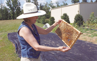 Stopped by a roadside vegetable stand last weekend and met up with Mary Lee, owner of Lindrock Farm. After buying vegetables and three jars of her honey (she’s a beekeeper), she offered a tour of her place. Flower gardens, vegetable gardens, fresh herbs, beehives, pecan trees, blackberry bushes, her cute young chickens…I was a little overwhelmed not only by her beautiful, 80-odd acres, but by the warm hospitality shown to a stranger. By the time I left, Mary Lee had shown me how to improve our tomato garden next year, how to fry up her fresh-picked eggplant so Adrian D’Avanzo would eat it (which he did) and pointed out the way to nearby Chimney Peak mountain summit for a fall picnic. Oh, and then she gave us the name of a great local massage therapist, her cousin Barbara, who owns another