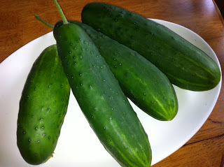 How long did it take your cucumbers to get that big? My first ones sprouted a little over a week ago and they're only half grown - the end with the flower is still small. :(