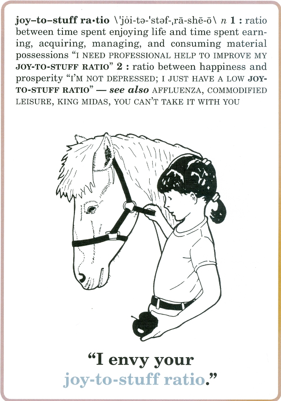 That's a great image! Our joy to stuff ratio could definitely be improved and we're working on it. But it's amazing how different you feed after you change even just one room in your home to have less stuff. Just decluttered our living room recently and it's like an oasis now :)