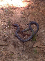 Well, he did have a visit from a 51-inch water moccasin (whose head was swiftly hacked off!). |