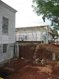 Mike has abandoned me. While I slave away working in ATL and driving soccer carpool, he’s spending his weekdays @ the farm painting and playing. But I did feel a little sorry for him today when I got this photo. This is base camp. Note the stylish chair, comfy air mattress, and table for one (a.k.a. laundry basket). Yep, he’s livin’ in the lap of luxury.