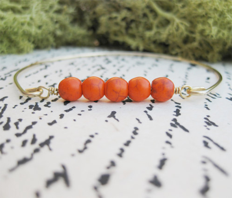 We simply love these bangles by Lisa Hutson. For each bracelet, the natural blue and rare coral turquoise beads are wire wrapped together, then hooked on a hand-forged gold tone brass band. Once the bangle is finished, it tumbles for 18 hours in a blend of stainless steel shot which hardens it and smooths out any rough edges — a step that sets Lisa’s distinctive jewelry apart. Once they’ve been tumbled, each bracelet is polished by hand for the highest heirloom quality. Lisa creates all of her jewelry from her studio in Nashville, where she’s kept company by her two canine BFFs who often lend an ear to long conversations and serve as final judges when she just can’t decide on a design she’s working on.