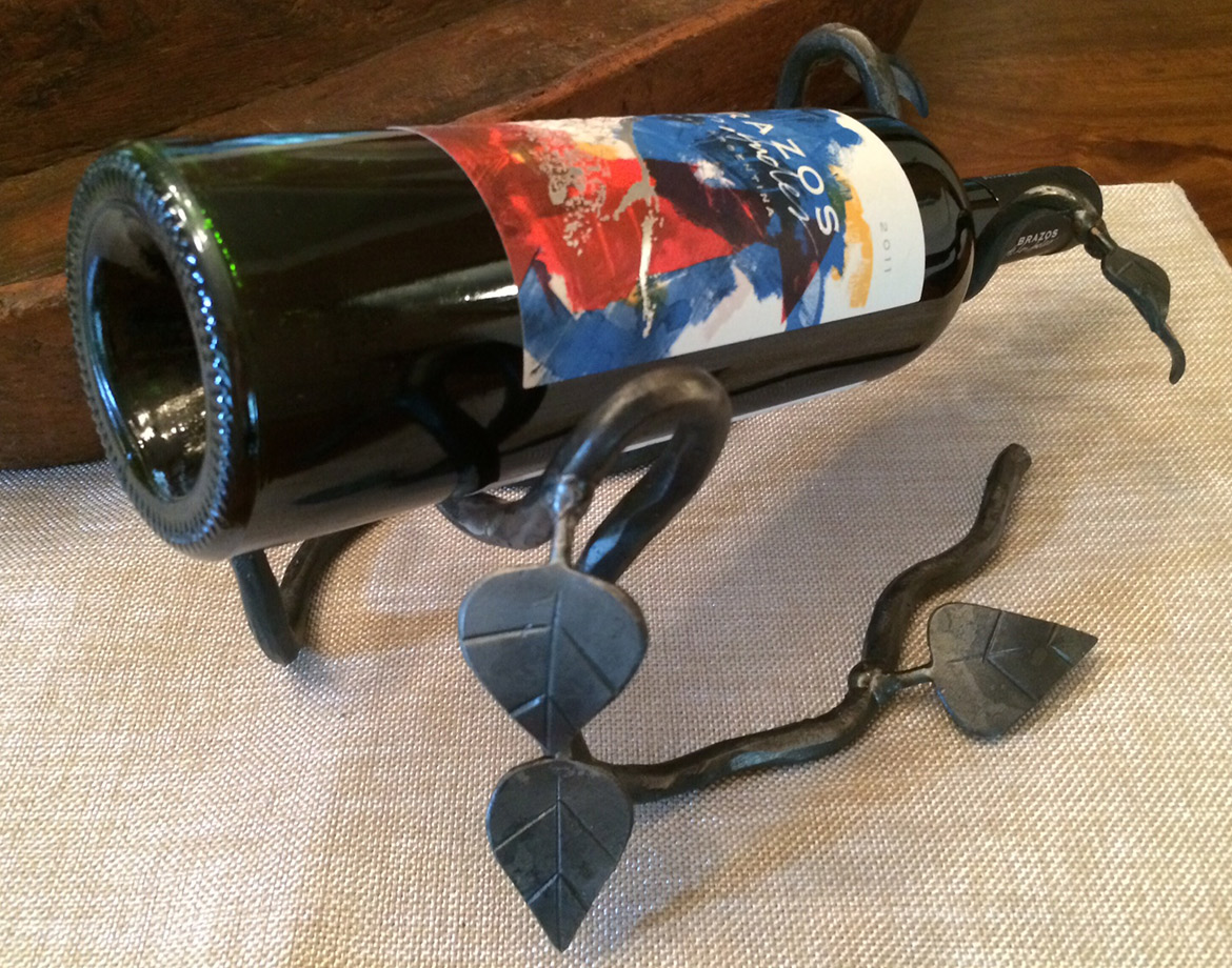 Barkley is a long-time friend – he started out as our farrier and has evolved into a master ironworks artist whose work can be seen all over the country, as well as our humble little farm. Place this exquisite wrought iron wine cradle in your dining room or kitchen and it’s sure to capture everyone’s eye – not to mention become a treasured heirloom to be passed down for generations.